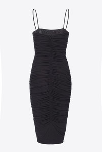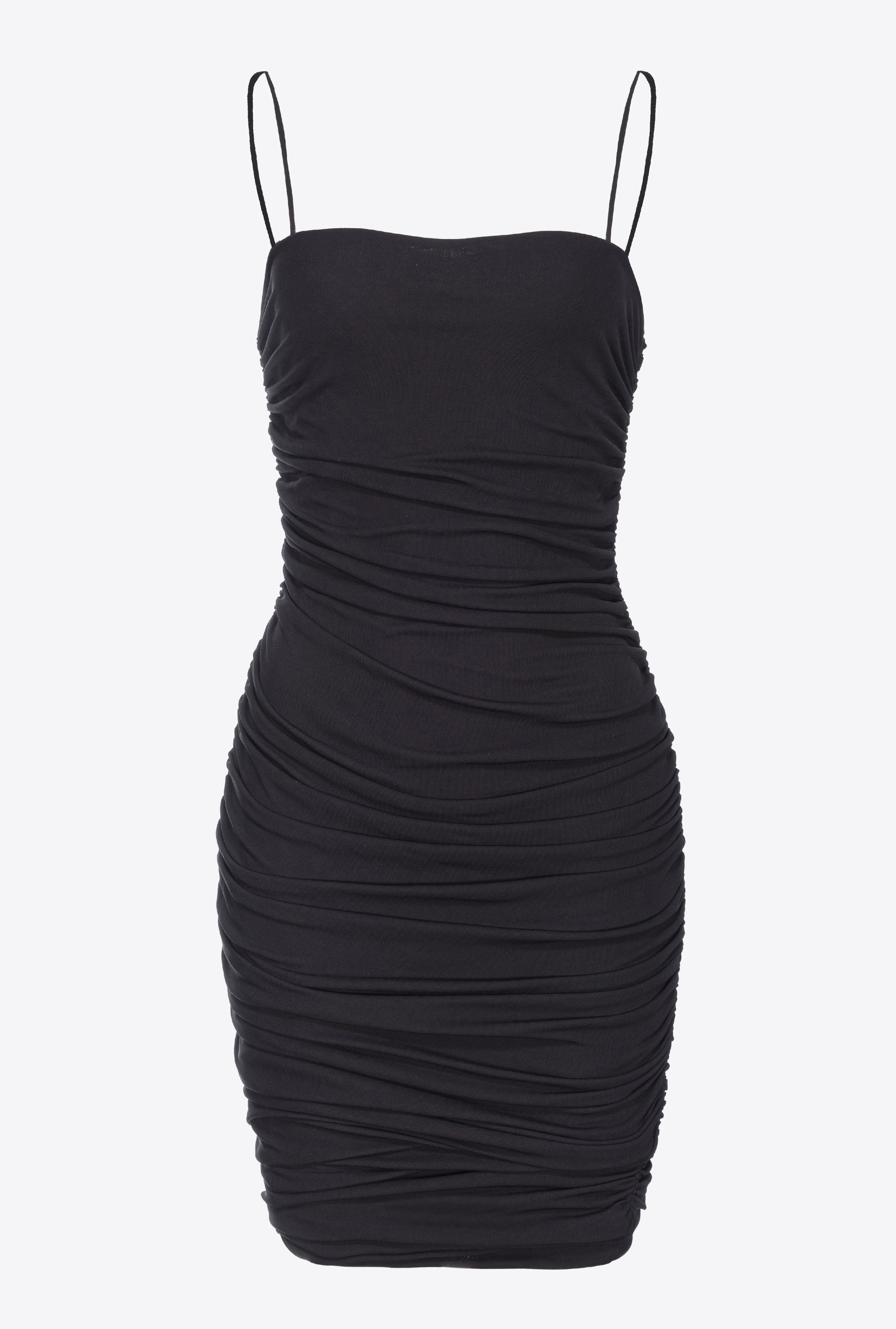Sleeveless, slim-fitting dress in crepe interlock fabric. Thin shoulder straps, straight neckline at the front and back, and gathering and draping all the way down the dress. Asymmetric hem that is longer on one side. Concealed central zip fastening on the back. COMPOSITION Outside Fabric: VISCOSE 100% - Lining: POLYAMIDE 92% POLYAMMIDE 92% ELASTANE 8%