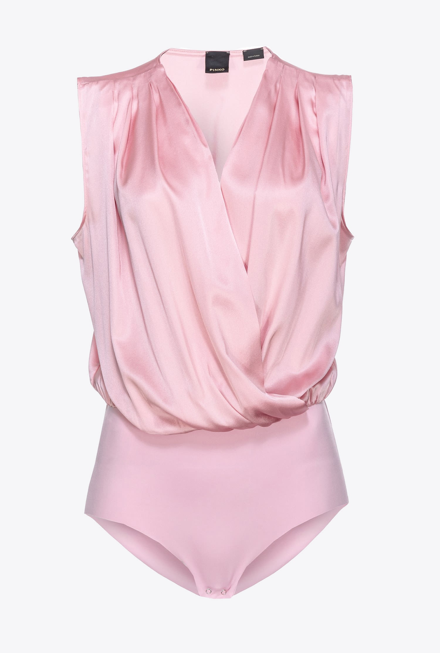 Sleeveless, flowing bodysuit in stretch silk satin with draping, wrapover shape and V-neck at the front. COMPOSITION 1° Outside Fabric: SILK 96% ELASTANE 4% - 2° Outside Fabric: POLYAMIDE 78% POLYAMMIDE 78% ELASTANE 22%
