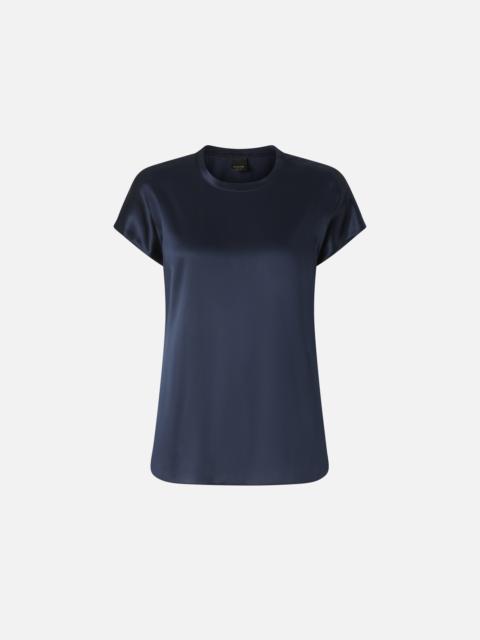 STRETCH SILK SATIN BLOUSE WITH ROUND NECKLINE