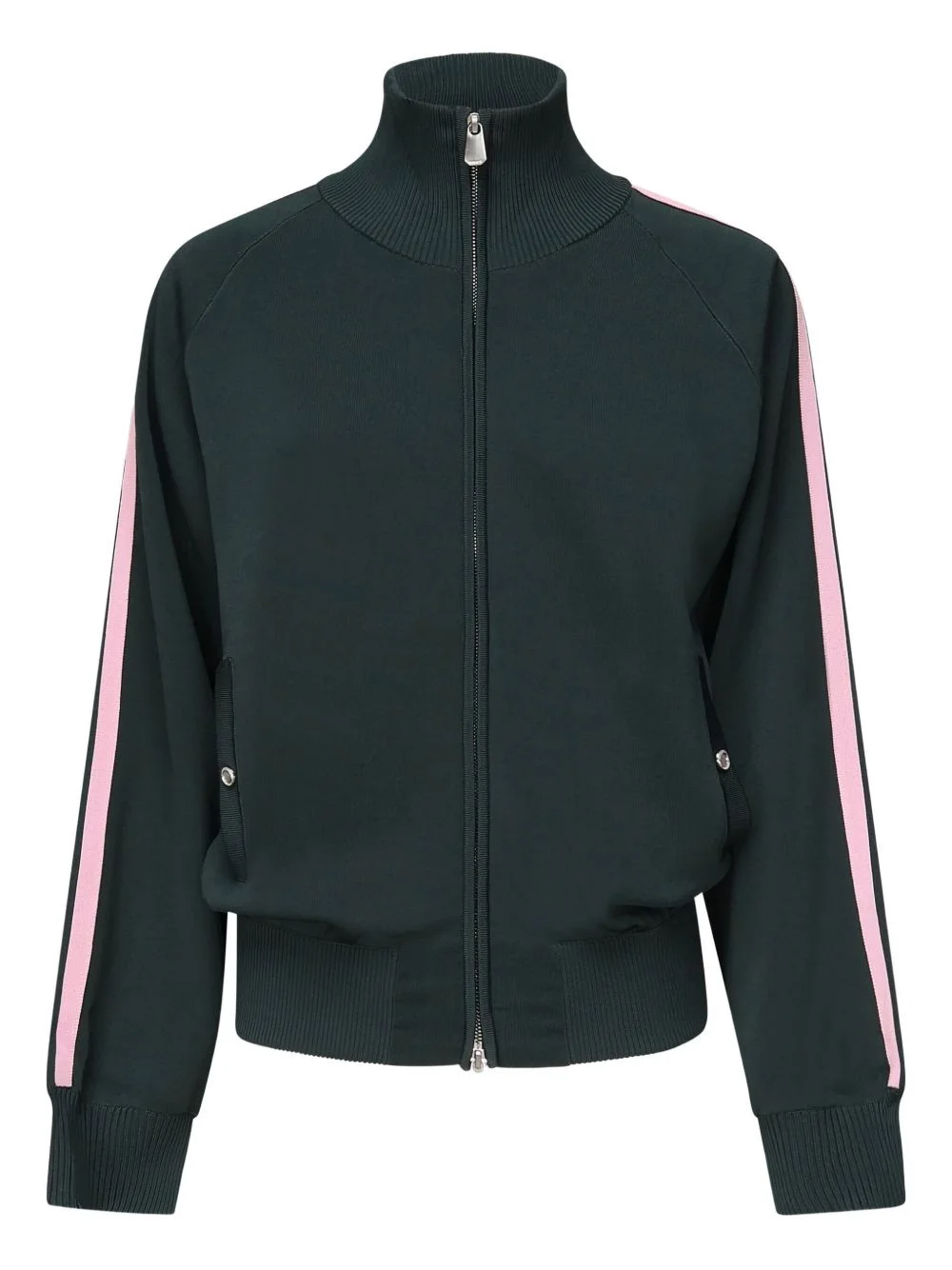 stripe-detail zip-up sweatshirt Highlights Imported Composition Viscose 82%, Polyamide 18%
