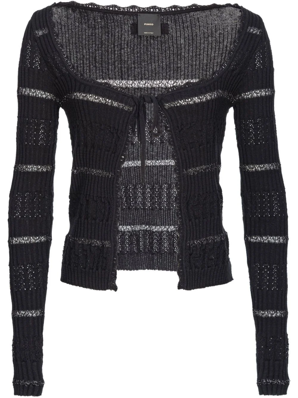 striped cardigan Highlights - Black - Front tie fastening - Scoop neck - Long sleeves Imported Composition Fabric 100% SIZE & FIT FittingInformation Designed for a slim fit that sits just away from the body offering a close yet comfortable fit Made with a midweight knit, this piece offers some stretch