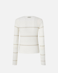 PISANINO SWEATER − 104735A2FCZ05 Long-sleeved sweater in precious cotton and silk blend yarn ribbed with a punched pattern, which adds a feminine detail, and horizontal striped pattern with metallic thread, for a sparkling and original touch. The fitted sweater is completed by a classic round neckline and logo label on the back of the neck. This sweater is a passepartout item to have in your spring wardrobe, perfect both as a top and as an underjacket, in combination with a more formal suit. COMPOSITION : COTTON 85% SILK 15% - : POLYESTER 62% Metallic 38%