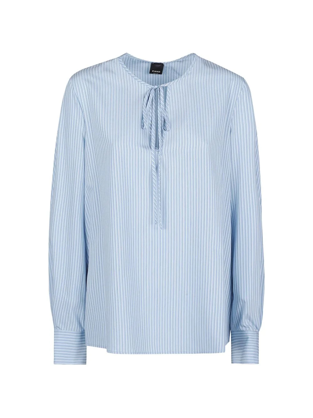 striped tie-fastening blouse Highlights - Light blue - Striped design - Tie detail - Long sleeves - Buttoned cuffs - Gathered shoulders Made in Italy Composition Viscose 100% Washing instructions Read Manufacturer Guidelines
