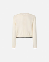 STROMBOLI CARDIGAN − 105447A2Q9Z13 Cardigan made from a soft merino wool and cashmere blend with ribbed V-neck, hem and cuffs. The contrasting yarn emphasises the cuffs and hem, while the distinctive PINKO lettering logo label completes the design. The piece has undergone finishing tests to minimise the possible formation of pilling, ensuring greater fabric softness and durability. Understated and contemporary, this design will become a real staple in your wardrobe. COMPOSITION Outer Yarn: WOOL 90% CASHMERE 10%