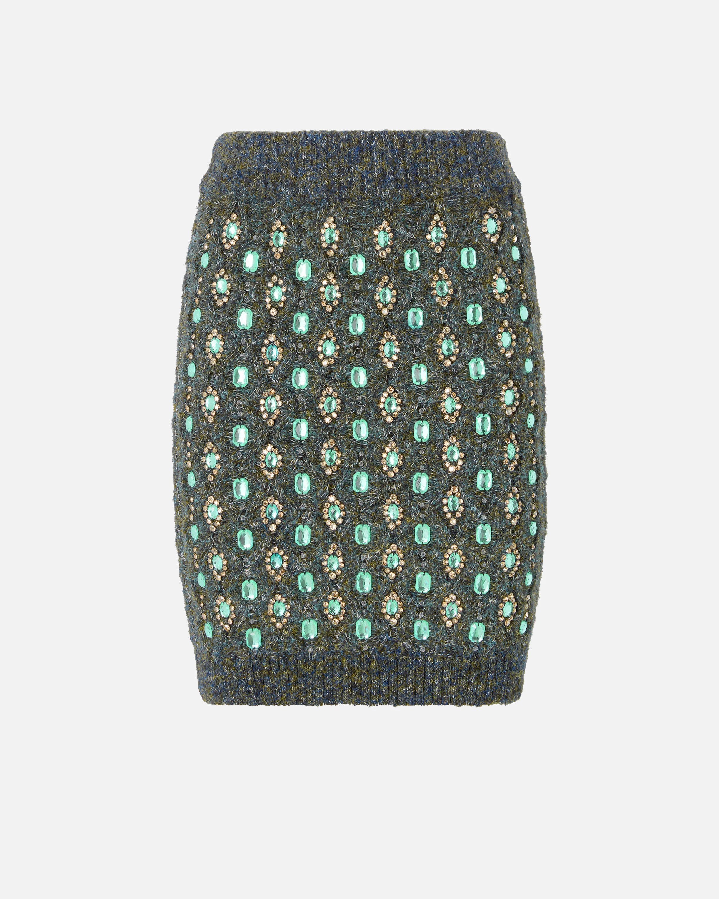 STRONG ENOUGH SKIRT − 105967A2YCIG1 Skirt knit from yarns of different colours, featuring cable stitching that gives the design movement and a three-dimensional feel, and ribbing on the elasticated waist and hem. Embellished with hand-applied chaton embroidery on the front, which provides glowing contrast against the yarn, this item will give your wardrobe a touch of originality. Warm up your winter outfits with this garment, paired perfectly with its matching cardigan for a refined, understated look. The piece has undergone finishing tests to minimise the possible formation of pilling, ensuring greater fabric softness and durability. COMPOSITION Outer Yarn: POLYESTER 85% ACRYLIC 13% ELASTANE 2% - : Glass 100% - : ACRYLIC RESIN 100% ACRYL.RES. 100% - : STEEL 100%