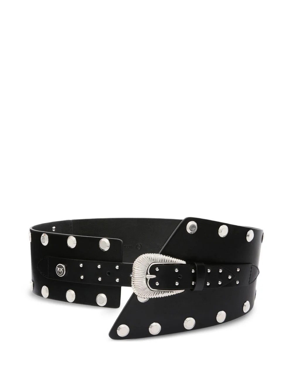 studded buckle belt Highlights - Black - Silver-tone hardware - Stud embellishment - Buckle fastening - Tonal stitching - Logo detail Made in Italy Composition Calf Leather 100%, Zamak 100%