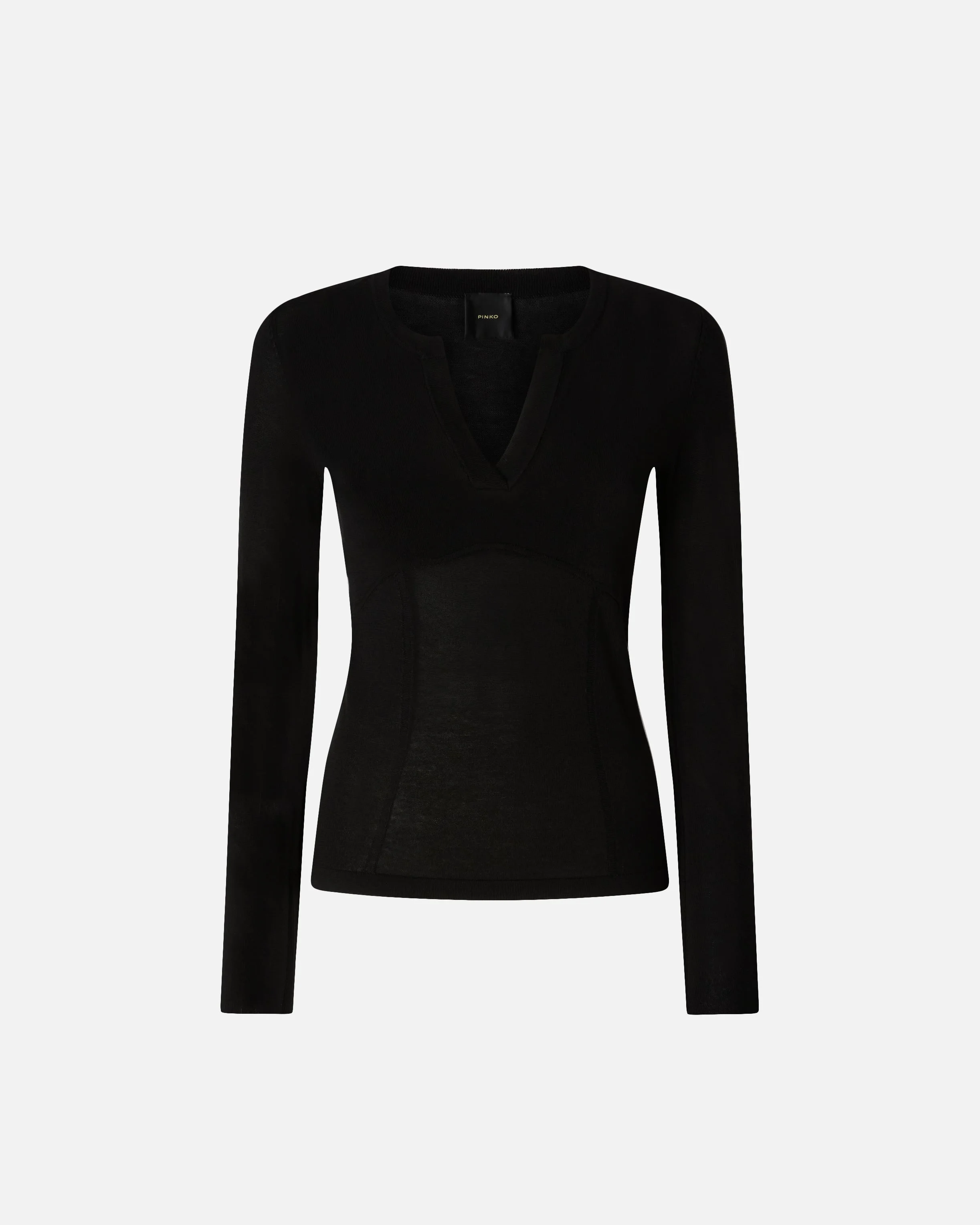 106332A349-Z99 Long-sleeved sweater in lightweight cotton and viscose yarn, featuring a V-neck and seductive bustier-style cut-outs. The final touch is given by the label with jacquard PINKO logo lettering on the back. Understated and contemporary, this model will become a real all-purpose staple in your wardrobe. COMPOSITION Outer Yarn: VISCOSE 57% COTTON 43% - 1st Outer Yarn: VISCOSE 46% COTTON 34% POLYAMIDE 17% POLYAMMIDE 17% ELASTANE 3%