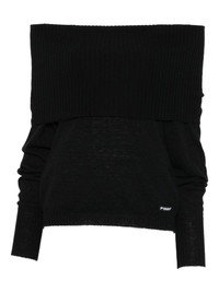 off-the-shoulder sweater Highlights - Black - Off-the-shoulder neckline - Long sleeve - Ribbed trims - Logo patch Made in Italy Composition Nylon 50%, Alpaca 40%, Wool 10% SIZE & FIT Model measurements Height 5 ft 9 in(1.76 m) Bust/Chest 33.85 in(86 cm) Hips 35.43 in(90 cm) Waist 25.59 in(65 cm) Washing instructions Hand Wash