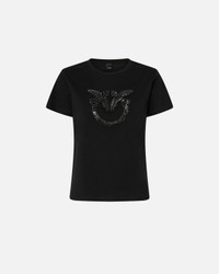 QUENTIN T-SHIRT − 100535A2RNZ99 Short-sleeved cotton jersey T-shirt. This piece is embellished with the Love Birds logo decorated with hand-embroidery consisting of pearls, crystal chain with a baguette cut and rhinestones in different shapes attached with special claws on the sides to make them more secure. This T-shirt is perfect to wear for any occasion, from formal to more sporty, bringing an iconic, feminine touch. COMPOSITION 1° Outside Fabric: COTTON 100% - 2° Outside Fabric: COTTON 95% ELASTANE 5% - : Glass 100% - : POLYVINYL CHLORIDE 100% POLYVINYL FIBRE 100% - : STEEL 100%