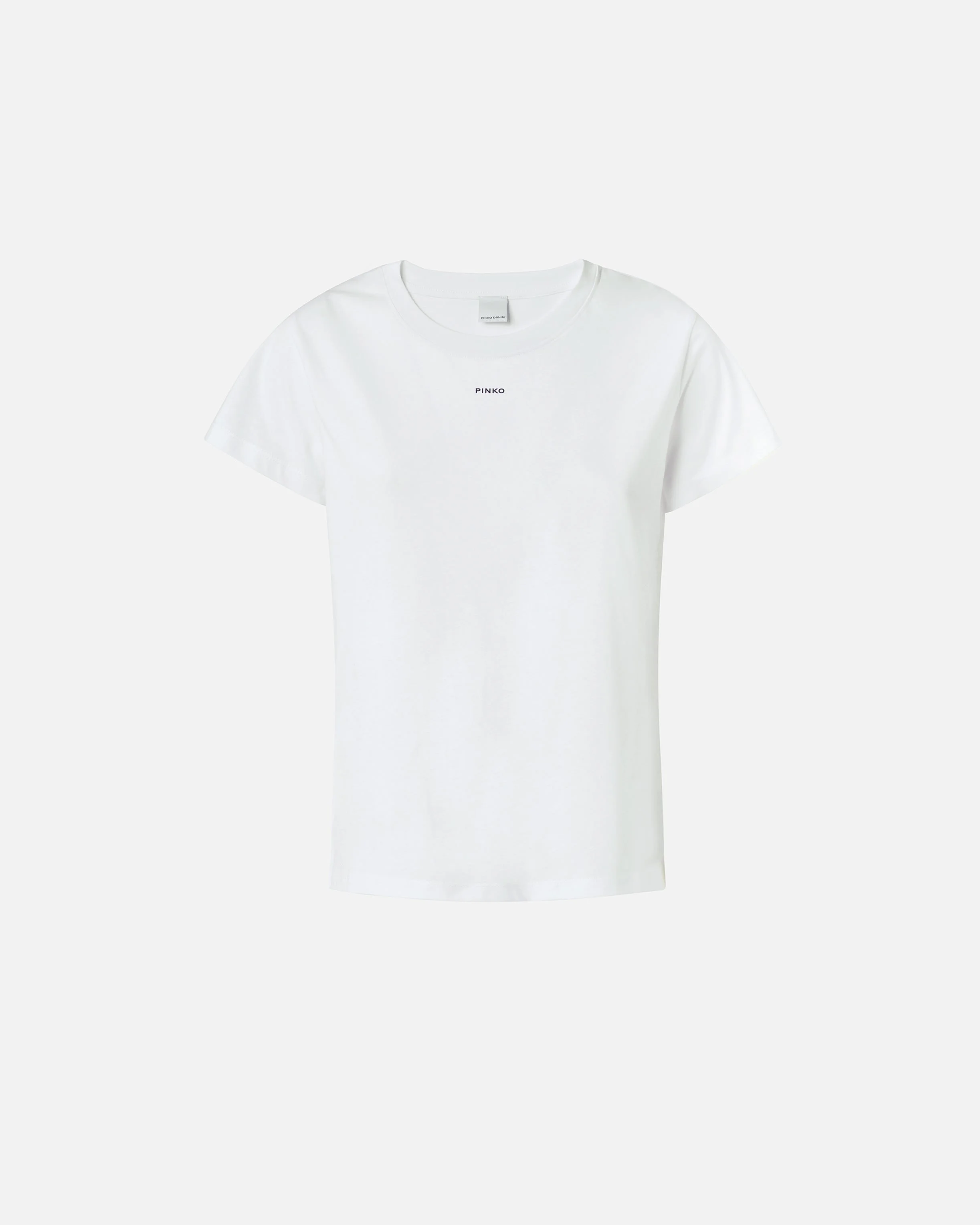 100373A228-Z04 Short-sleeved T-shirt in cotton jersey with old wash treatment personalised with central PINKO mini logo print on front. - BASICO T-SHIRT COMPOSITION 1° Outside Fabric: COTTON 100% - 2° Outside Fabric: COTTON 100% MEASURES W: 0.16 g
