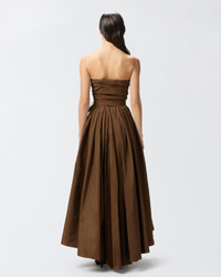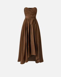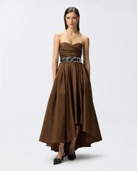 PARROT DRESS − 104937Y3LEL71 Sleeveless midi dress made of taffeta, a fabric that lends itself particularly well to the construction of geometric volumes and special effects. The elegant dress features a strapless bustier with a crossed sweetheart neckline and a voluminous skirt with soft pleats, slightly shorter in front to frame the refined shoes you decide to combine. Special details of the dress are the sash belt to tie high on the bustier to emphasize the silhouette and add a special touch, and the pockets inserted on the hips. Thanks to its characteristic design and the fabric in which it is made, this dress will become the protagonist of your seasonal ceremonies. COMPOSITION Outside Fabric: POLYESTER 100% - Lining: POLYESTER 90% ELASTANE 10%