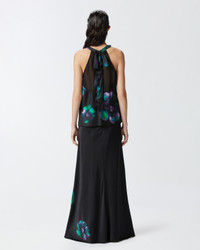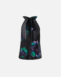 TALANGE TOP − 103874A23PZS1 Sleeveless flowing top in satin fabric with a striking matte finish and fade-effect floral print. Bowknot tie fastening at the rear of the neck and light, semi-transparent-effect georgette insert on the back. The main fabric is made with 51% EcoveroTM viscose, from responsibly managed forests and produced with environmentally friendly processes. COMPOSITION Outside Fabric: VISCOSE 97% ELASTANE 3% - Lining: POLYESTER 100%