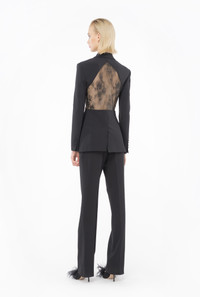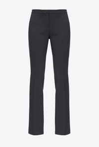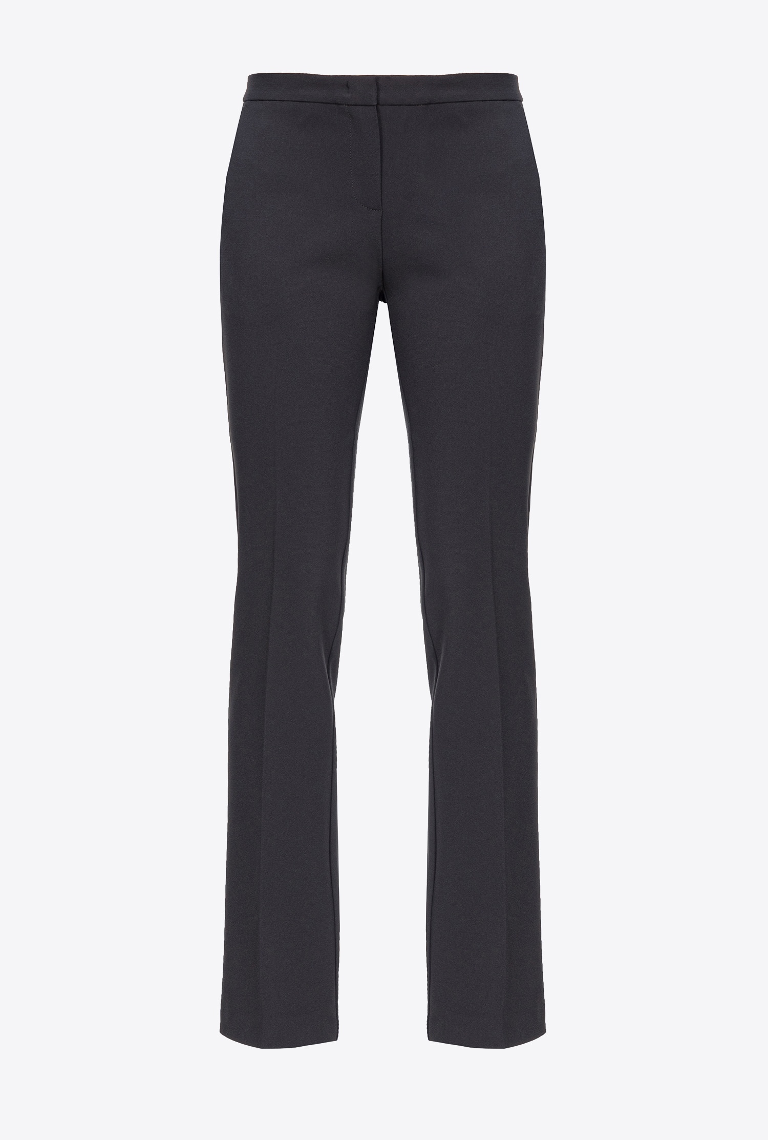 Elegant trousers in technical stretch crepe fabric. Low waist, slanted front pockets, welt pockets at the back and fitted legs that flare out slightly at the bottom. Fastened with zip and small hook. COMPOSITION Outside Fabric: POLYESTER 96% ELASTANE 4% - Lining: ACETATE 64% POLYESTER 36%
