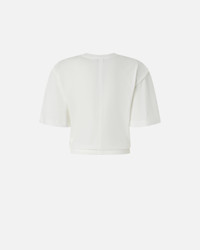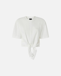 TUCA TUCA T-SHIRT − 105015A2IDZ09 Short-sleeved, cropped belly sweater in vintage cotton jersey with knotted detail at the front. This cropped T-shirt is customised with an embroidered logo on the left side of the front and features slightly structured shoulders and pronounced armholes. The belly-revealing cropped cut and knotted detail make this T-shirt the perfect summer garment for celebrating the sunny season with light, feminine everyday style. COMPOSITION 1° Outside Fabric: COTTON 100% - 2° Outside Fabric: COTTON 100% - : POLYESTER 100%