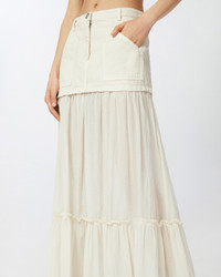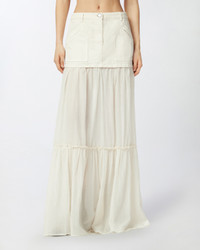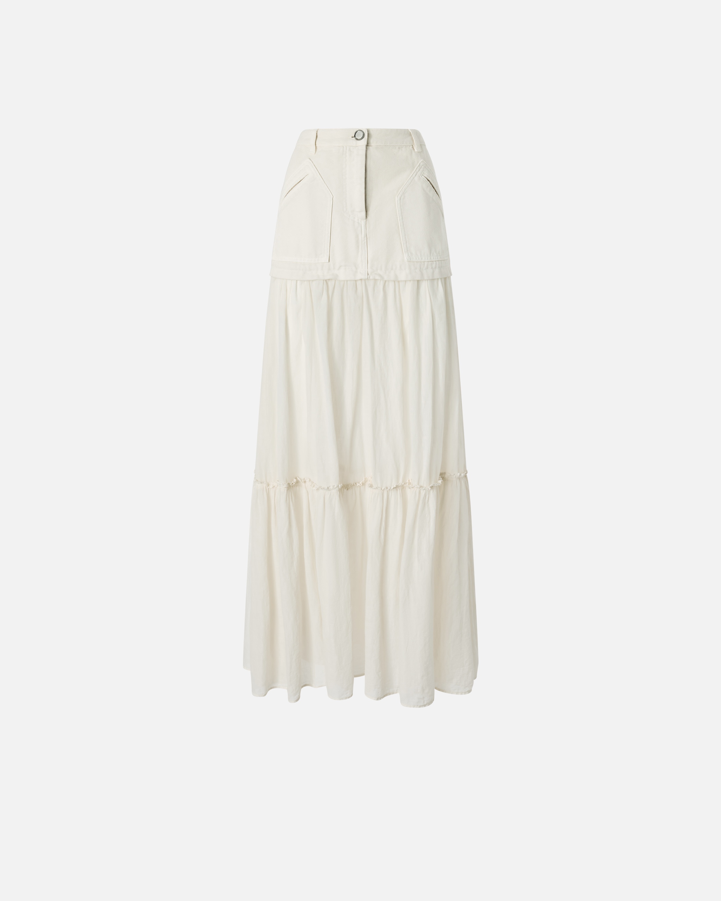 LONG SKIRT IN CANVAS AND COTTON VOILE