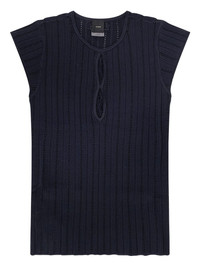crew-neck sleeveless cutout-detail sweater Highlights - Blue - Ribbed-knit - Crew-neck - Sleeveless - Cutout-detail Imported Composition Viscose 83%, Nylon 17% Washing instructions Read Manufacturer Guidelines
