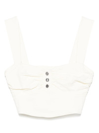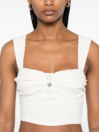 Voyager top Highlights - Light beige - Concealed side zip fastening - Sweetheart neck - Sleeveless - Cropped Made in Italy Composition Linen/Flax 55%, Viscose 42%, Elastane 3% SIZE & FIT Model measurements Height 5 ft 11 in(1.8 m) Bust/Chest 31.49 in(80 cm) Hips 35.82 in(91 cm) Waist 24.8 in(63 cm) FittingInformation Designed for a close fit throughout Cropped in length Made from a midweight stretch fabric, this piece offers elasticity and flexibility when worn