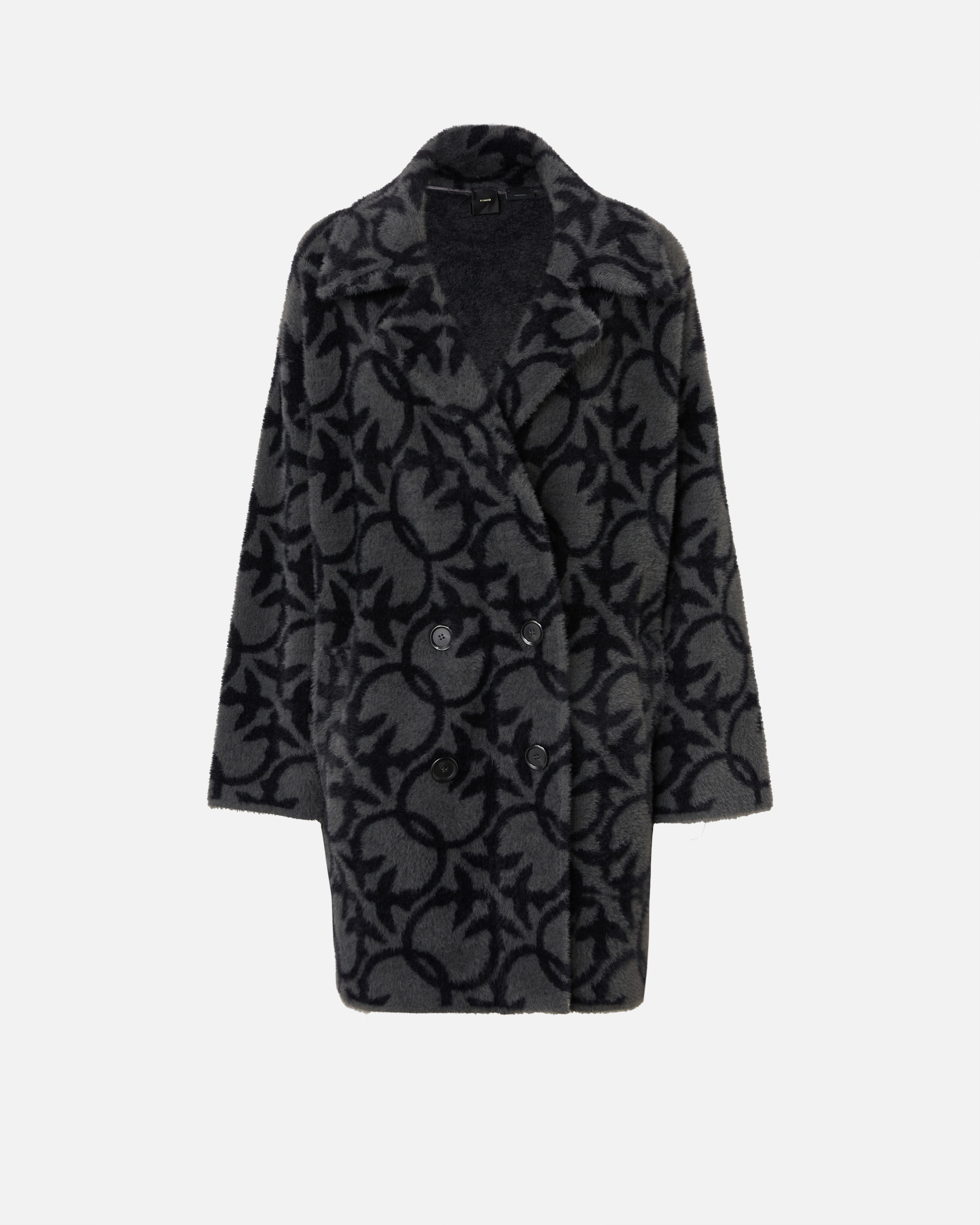 TORO COAT ā 101573A21QZI2 Women's faux fur cocoon coat with shape that tapers in at the bottom and Love Birds Monogram print. Lapel collar, slightly low set-in long sleeves and side pockets. Double-breasted button fastening. COMPOSITION Outside Fabric: POLYAMMIDE 100% POLYAMIDE 100%