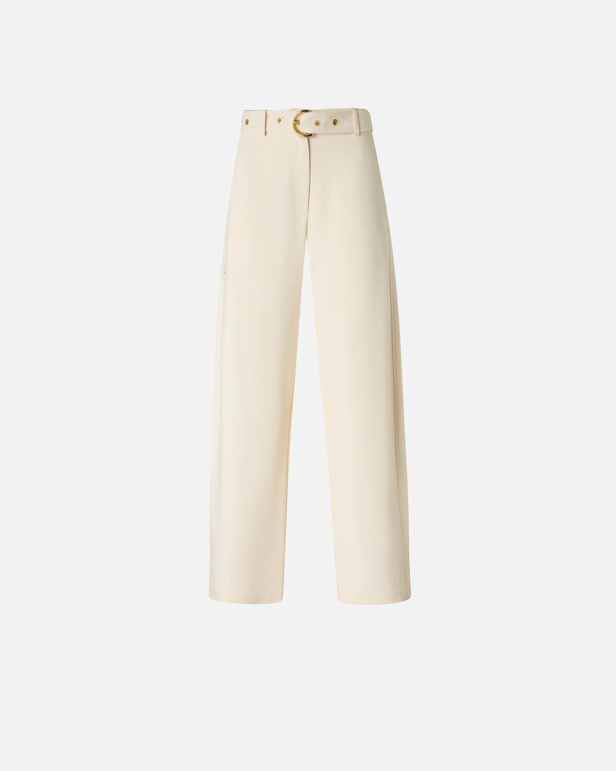 106492A2W6-C00 Straight-leg trousers in fluid-effect panama stretch fabric reminiscent of rustic linen. This garment features rear welt pockets, zip and button fastening, and a removable matching belt with gold-coloured eyelets and buckle. Understated and contemporary, this model will become a real all-purpose staple in your wardrobe. COMPOSITION Outside Fabric: VISCOSE 91% POLYESTER 8% ELASTANE 1% - Lining: ACETATE 67% POLYESTER 33%