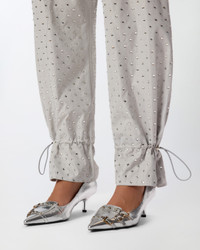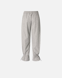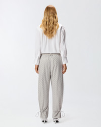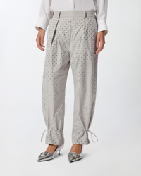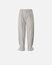 PEPITA TROUSERS − 105984A2XXK14 Balloon-fit trousers made from twill-woven stretch viscose fabric. This item is highly functional thanks to the elasticated rear part of the waist and belt loops but, above all, thanks to the trekking-inspired drawstrings at the bottom of the legs that allow you to tailor the fit and style. Balancing out the practicality of the garment perfectly is its embellishment: an exquisite all-over motif featuring diamond-shaped heat-transferred rhinestones and metal micro studs ready to elevate your outfits in pure PINKO style. COMPOSITION Outside Fabric: POLYESTER 100% - Lining: POLYESTER 100% - : Glass 100% - : aluminium 100% Aluminium 100%