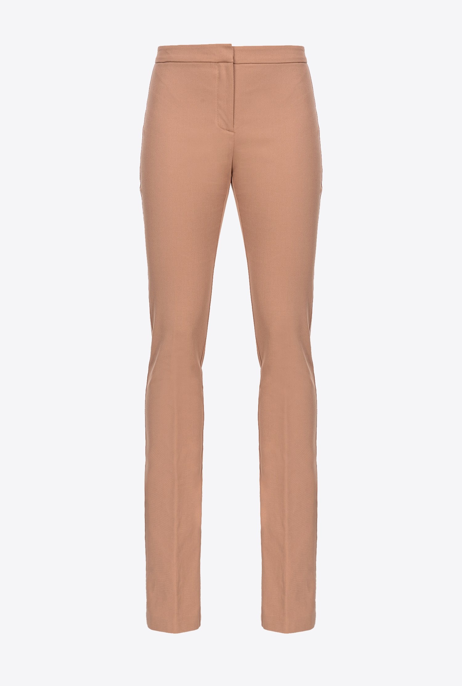 Slightly flared trousers in stretch cotton tricotine, a special fabric whose texture is reminiscent of knit material. Regular waist and slightly flared, slim-fitting legs with small slit on the back. Fastened with zip and small concealed hook. COMPOSITION Outside Fabric: COTTON 97% ELASTANE 3%