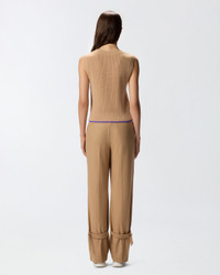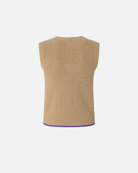 STAGNONE GILET − 105452A2Q9CY9 V-neck vest in a fine merino wool and cashmere blend, perfect for days at the office and beyond. The contrasting yarn on the hem is a delicate and unexpected touch of class. The hem, armholes and neck are ribbed, while the final touch is given by the tone-on-tone label with PINKO lettering logo on the side of the front. The piece has undergone finishing tests to minimise the possible formation of pilling, ensuring greater fabric softness and durability. COMPOSITION Outer Yarn: WOOL 90% CASHMERE 10%
