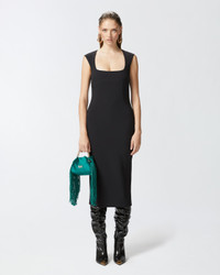 VALENSOLE DRESS − 103960A20AZ99 Fitted sleeveless longuette dress in stretch crepe fabric with a wide square neckline. The dress is characterised by a metal zip at the back, along the entire length of the dress, with a double slider, which acts both as a fastening and as a slit at the bottom, through the opening of the zip. COMPOSITION Outside Fabric: POLYESTER 94% ELASTANE 6% - Lining: POLYAMIDE 90% POLYAMMIDE 90% ELASTANE 10%