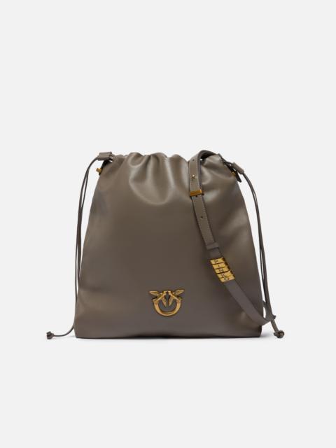 104359A0QO-K33Q Leather Classic Slouchy Bag featuring a flat and vertical design with a cotton lining. A distinctive accessory that is perfect for endless looks, this bag has a drawstring and side zip to adjust the pouch-style fastening and an inner zip pocket to keep your essentials safe. The design is versatile thanks to the leather strap that allows you to wear it in various ways depending on your preferences. This accessory will give you a refined and on-trend look, while the iconic Love Birds logo embodies the inimitable PINKO style. Activate your PINKO bag: verify the authenticity of your product and access a personalised experience by scanning the Love Birds embroidery on the back of the bag with your smartphone! COMPOSITION Leather: CALF LEATHER 100% CALFSKIN LEATHER 100% - Lining: COTTON 100% - Accessory: Zinc 100% MEASURES W: 0.7 g H: 36.0 cm W: 3.0 cm L: 31.0 cm