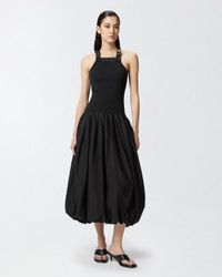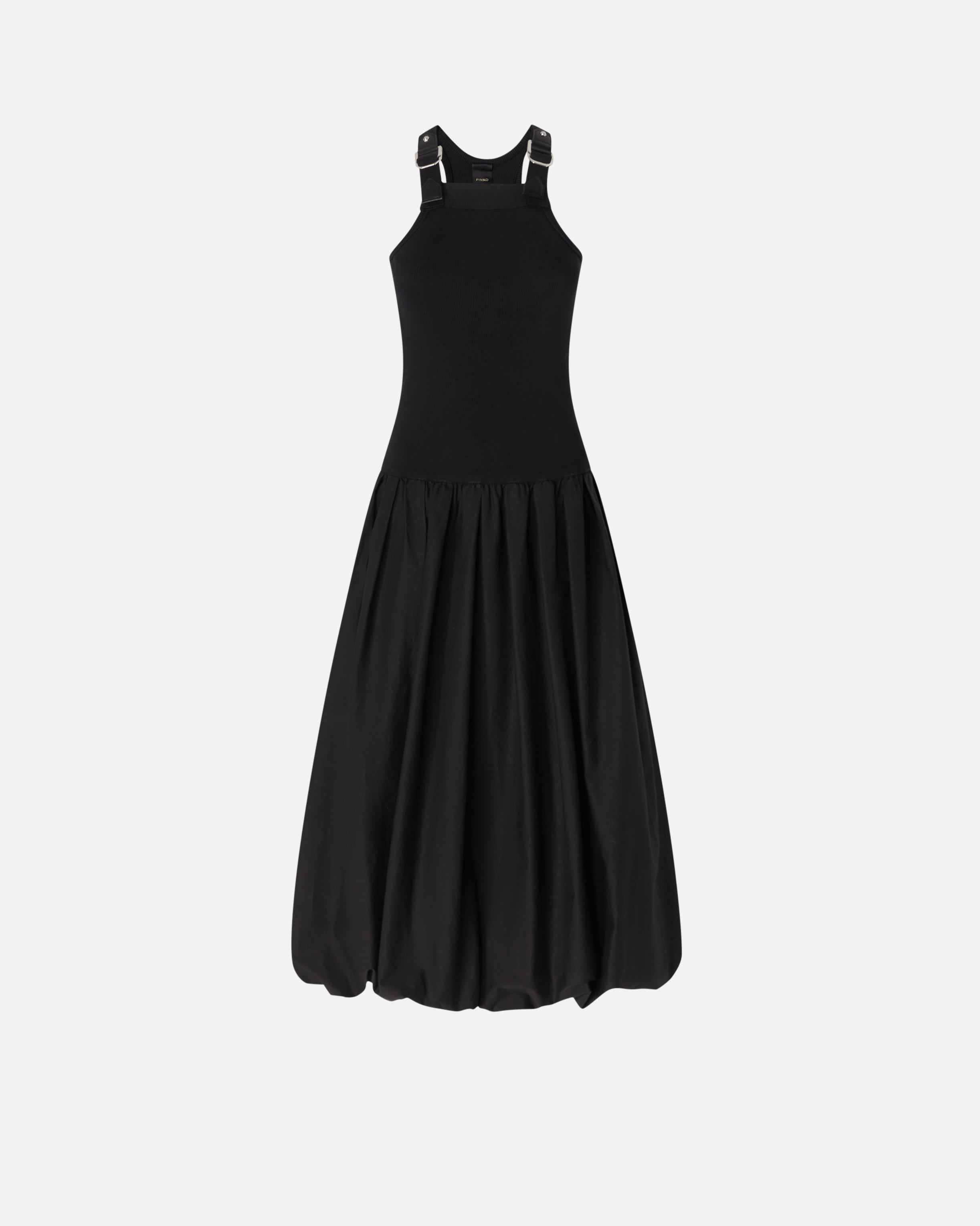 PETER DRESS − 105137A2L8Z99 Women's sleeveless midi dress featuring a fitted corset in ribbed stretch cotton, with a rowing neckline on the back and straps with a technical design, adjustable with a metal buckle. The balloon midi skirt, long below the knee, is made of precious leatherovo cotton, a fabric with a compact weave and at the same time very light and soft, and includes practical pockets inserted on the sides. Wear this dress from the balloon line for an outfit that is refined and original at the same time, to be customized with the most suitable accessories for the occasion. COMPOSITION 1° Outside Fabric: COTTON 97% ELASTANE 3% - 2° Outside Fabric: COTTON 95% ELASTANE 5% - coating: POLYURETHANE 100% - Lining: COTTON 100% - Accessory 1: COTTON 100% - Accessory 2: POLYESTER 100%