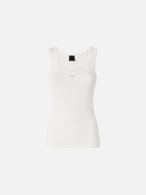 100807A338-Q48 Vest top in soft stretch cotton jersey with fine ribbing, accented with a gold Love Birds logo detail on the chest for a touch of shine in true PINKO style. This piece is particularly versatile and can be easily paired with a refined skirt or a pair of jeans for more casual occasions. - CALCOLATORE TANK TOP COMPOSITION 1° Outside Fabric: COTTON 97% ELASTANE 3% - 2° Outside Fabric: COTTON 100%