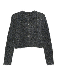 metallic-knit cardigan Highlights - Grey - Metallic flecks - Front button fastening - Long sleeves - Ribbed cuffs Imported Composition Polyester 85%, Acrylic 13%, Elastane 2% SIZE & FIT Model measurements Height 5 ft 10 in(1.78 m) Bust/Chest 31.49 in(80 cm) Hips 37 in(94 cm) Waist 23.62 in(60 cm) Washing instructions Read Manufacturer Guidelines