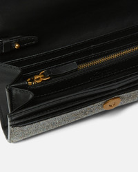 LOVE TINY BIRDS WALLET C − 103765A20DZZLQ00001 Refined wallet characterized by a surface completely covered with rhinestones that create the iconic monogram pattern with a sparkling and precious effect. The compact structure with a front flap and magnetic closure guarantees practicality for holding essential cards and documents, while the removable shoulder strap allows it to be transformed into a versatile mini bag. The applied crystals form an all-over pattern that catches the light, giving luminosity and distinctive character to the accessory, completed by the metallic logo that embellishes the design. The metallic finishes and coordinated chain add a luxury touch and functionality, making the accessory perfect for both everyday use and special occasions. Ideal for those looking for a multifunctional accessory with a strong glamorous impact, it pairs beautifully with evening or casual outfits to add a sophisticated point of light. COMPOSITION Outside Fabric: Silica 100% SILICON DIOXIDE 100% - Lining: COTTON 100% - Internal: POLYURETHANE 70% POLYESTER 30% - Accessory: Zinc 100% MEASUREMENTS - Height: 10 cm - Width: 6 cm - Length: 20 cm