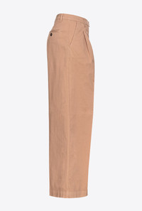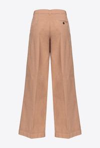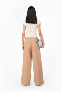Wide-leg trousers in stretch cotton cavalry: a very durable fabric originally used for horse-riding clothing. Regular waist with darts and belt loops, slanted side pockets, buttoned welt pockets at the back and wide legs with crease down the middle at the front and back. Fastened with zip and small concealed hook. COMPOSITION Outside Fabric: COTTON 97% ELASTANE 3% - Lining: COTTON 100%