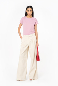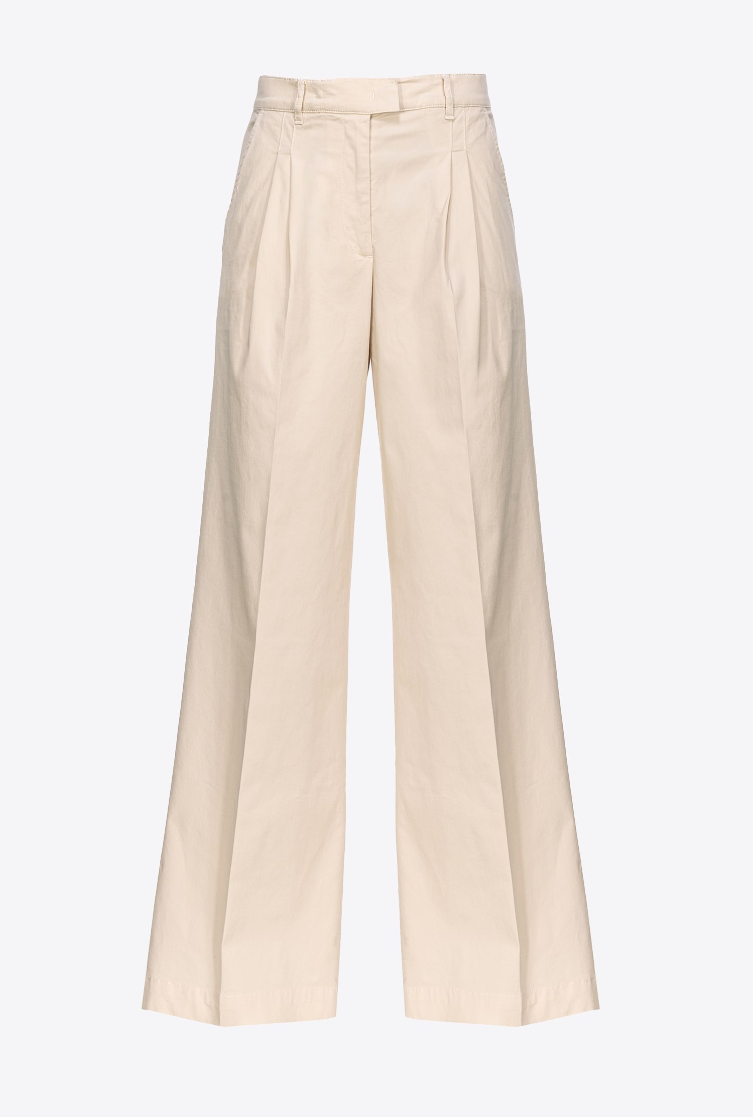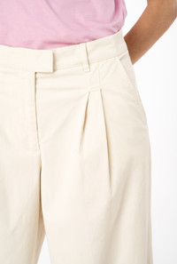 Wide-leg trousers in stretch cotton cavalry: a very durable fabric originally used for horse-riding clothing. Regular waist with darts and belt loops, slanted side pockets, buttoned welt pockets at the back and wide legs with crease down the middle at the front and back. Fastened with zip and small concealed hook. COMPOSITION Outside Fabric: COTTON 97% ELASTANE 3% - Lining: COTTON 100%