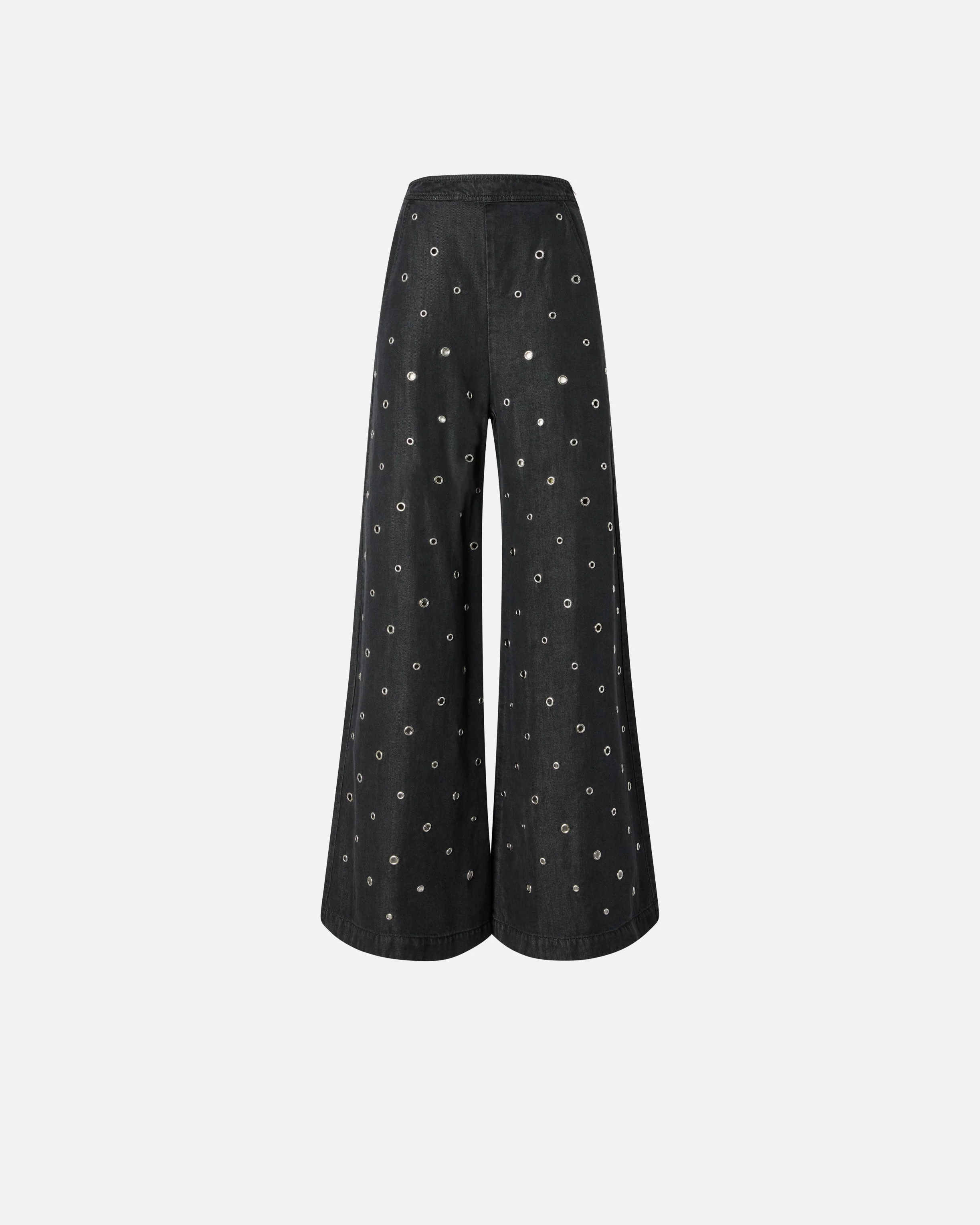 106636A33B-Z99 Jeans with extra-long and very wide-leg fit, featuring two side pockets and convenient invisible zip fastening on one side. This piece stands out for its distinct workmanship: the lightweight, fluid pure lyocell denim features a dark-wash finish with slight discolouration and is doted all over with small metal eyelets for a subtle openwork effect. Transform your daytime look into an original fashion statement by pairing these jeans with the matching blouse. - STIRATRICI TROUSERS COMPOSITION Outside Fabric: LYOCELL 100% - Lining: COTTON 100% - : copper 100% COPPER 100% MEASURES W: 0.84 g