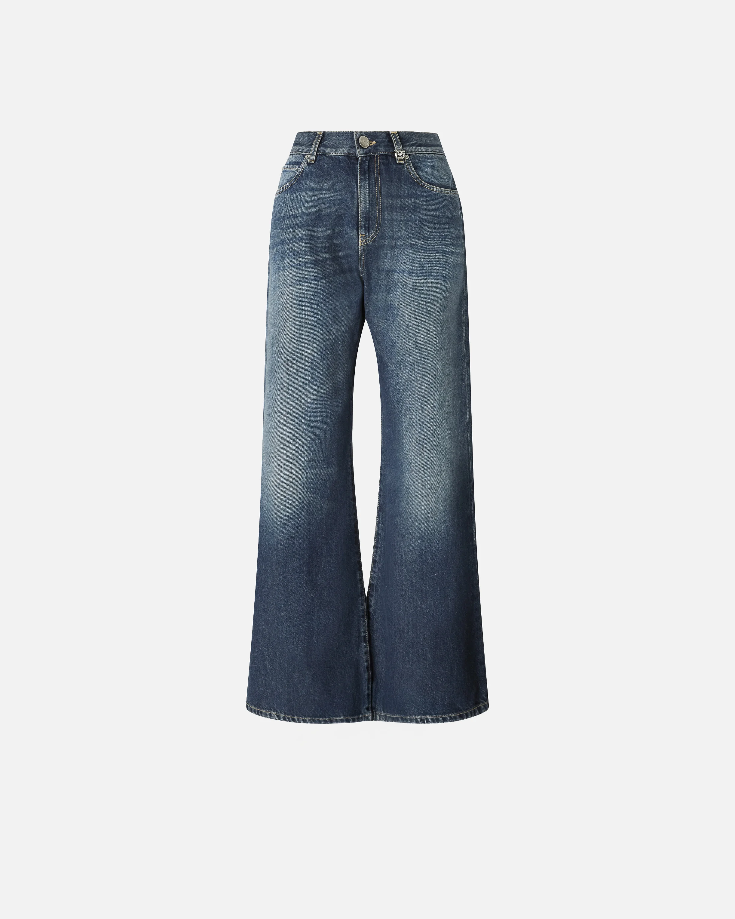 WANDA WIDE LEG − 101733A2RQPJZ Women's five-pocket jeans with a straight, wide leg, made from soft lyocell and cotton denim for a more fluid feel and a stonewash treatment. The brand's lettering logo embroidered on the back of the waistband, the Love Birds logo with embroidered birds on the right back pocket and the detachable belt loop with Love Birds logo add pure PINKO style to the design. Play around with pairings and wear these jeans low on the waist with a dropped crotch for a more masculine look, or pair them with more feminine pieces for a style that is all about contrast. Belt loops and front concealed zip and button fastening. This model is a little wider than the usual size. COMPOSITION Outside Fabric: COTTON 82% LYOCELL 18% - Lining: POLYESTER 65% COTTON 35%
