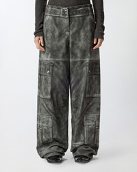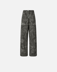 HONORIA TROUSERS − 106058A2ZXZ98 Cotton wide-leg trousers. The distinctive detail of this style lies entirely in the print, which exploits the trompe-l'œil technique to recreate a vintage leather effect on the cotton base and elements and details that are not real, but printed. Every model meticulously reproduces the nuances and textures typical of leather, as well as all the distinctive details of cargo trousers, such as the pockets along the legs, the back pockets, the waist belt, the fastening, the buttons and the top-stitching. Add these relaxed-style trousers to your wardrobe and be amazed by the quality and innovation in pure PINKO style. COMPOSITION 1° Outside Fabric: COTTON 100% - Lining: POLYESTER 65% COTTON 35%