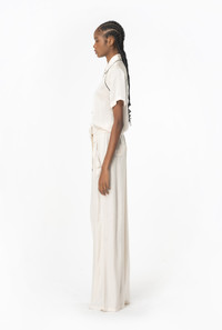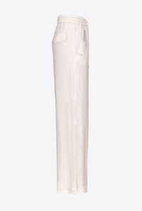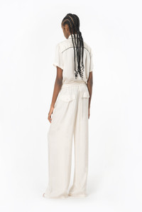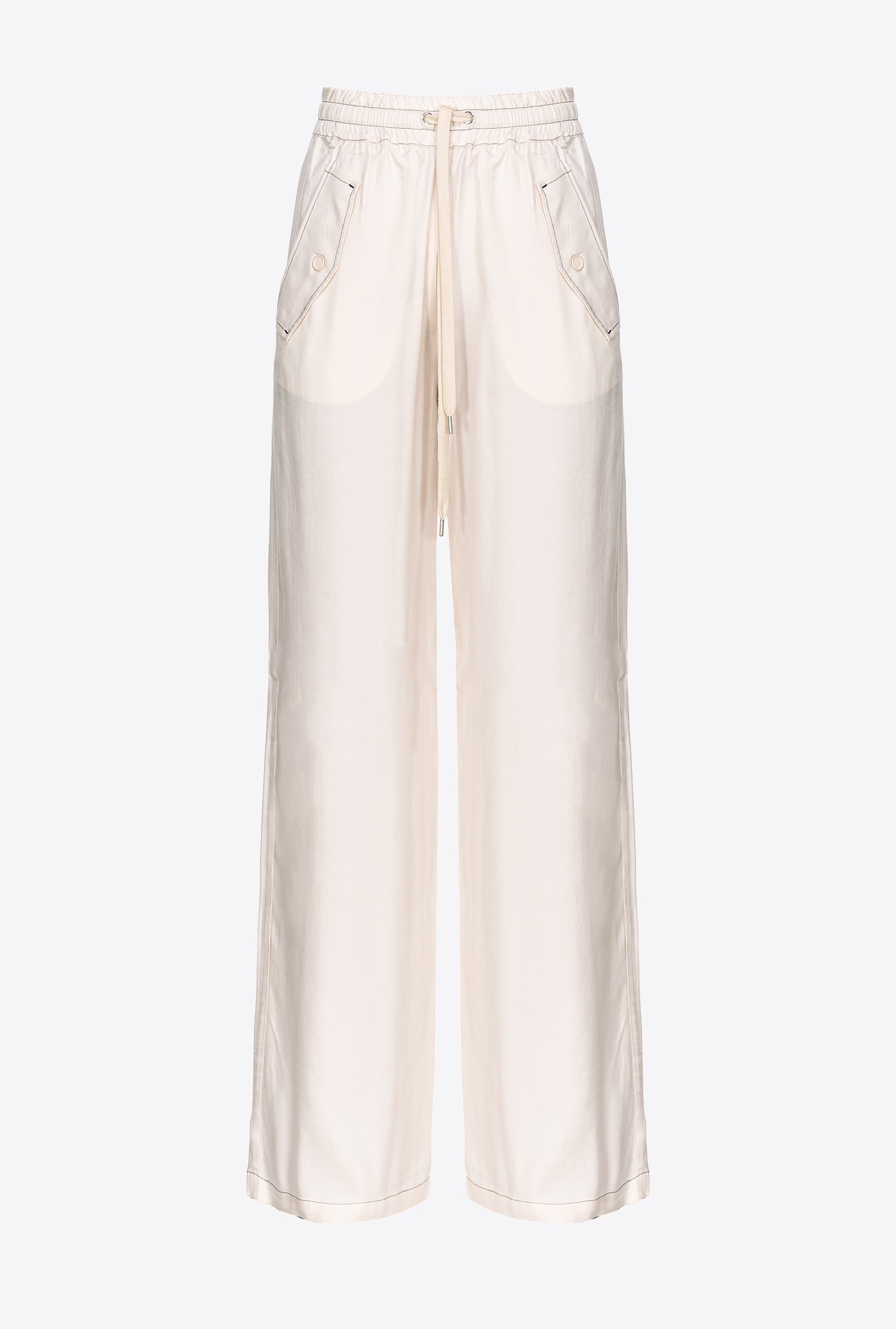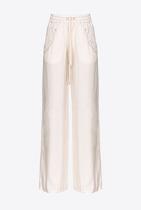 Wide-leg viscose twill trousers with contrasting topstitching. Elasticated high waist with drawstring to tie, straight-cut wide legs, slanted side pockets with added flap and pockets with buttoned flap on the back. COMPOSITION Outside Fabric: VISCOSE 100% - Accessory: POLYESTER 100%