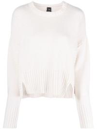 wool-cashmere blend sweater PINKO spotlights its affinity for sumptuous staples with this sweater. It’s spun from a blend of wool and cashmere to a round-neck silhouette with breezy side splits. Highlights - White - Wool-cashmere blend - Round neck - Long sleeves - Side splits - Ribbed hem Made in Italy Composition Wool 90%, Cashmere 10% SIZE & FIT Model measurements Height 5 ft 10 in(1.77 m) Bust/Chest 32.67 in(83 cm) Hips 35.43 in(90 cm) Waist 23.62 in(60 cm) FittingInformation Designed to be unstructured, offering a loose fit throughout Made with a midweight knit, this piece offers some stretch This piece fits true to size – take your usual size