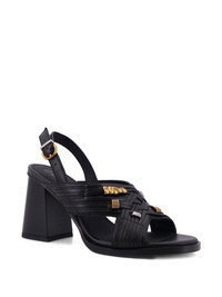 woven-detail heeled sandals Highlights - Black - Woven detail - Buckle fastening ankle strap - Open toe - Block heel - Gold-tone hardware Imported Composition Outer: Calf Leather 100% Lining: Calf Leather 100% Sole: Calf Leather 100%, Rubber 100%