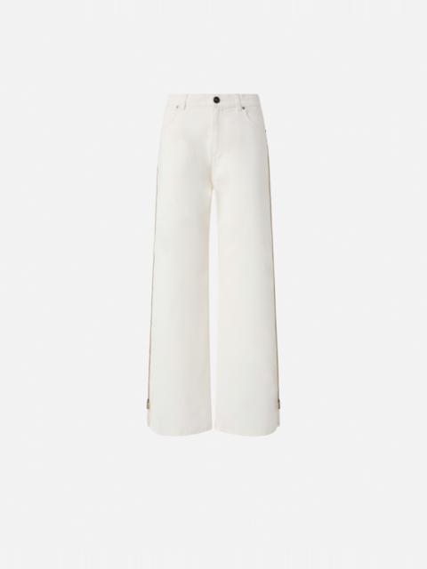 WANDA WIDE LEG ZIP − 104928A2V2Z99 Women's cotton bull denim jeans with a straight-cut, wide leg sporting a vertical full-length metal zip down the side. The zip allows you to wear these low-waisted trousers both completely closed and open, leaving a glimpse of the satin high-waisted panties with lace trim that look like a pair of lingerie-inspired shorts. The Love Birds logo is heat-stamped on the back of the waistband. These jeans allow you to adapt your style in a bold way with just one action, whenever you like. Low waist with belt loops, and metal tack-button and zip fastening. This model is a little wider than the usual size. COMPOSITION 1° Outside Fabric: COTTON 100% - 2° Outside Fabric: ACETATE 76% SILK 24% - Lining: COTTON 100% - : POLYAMIDE 61% POLYAMMIDE 61% VISCOSE 39%