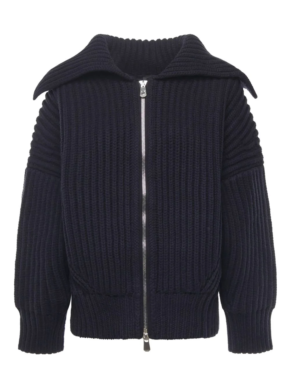 zip-up cardigan Highlights - Blue - Ribbed knit - Zip fastening - Wide collar - Long sleeves - Straight hem Imported Composition Wool 80%, Polyamide 20% Washing instructions Read Manufacturer Guidelines