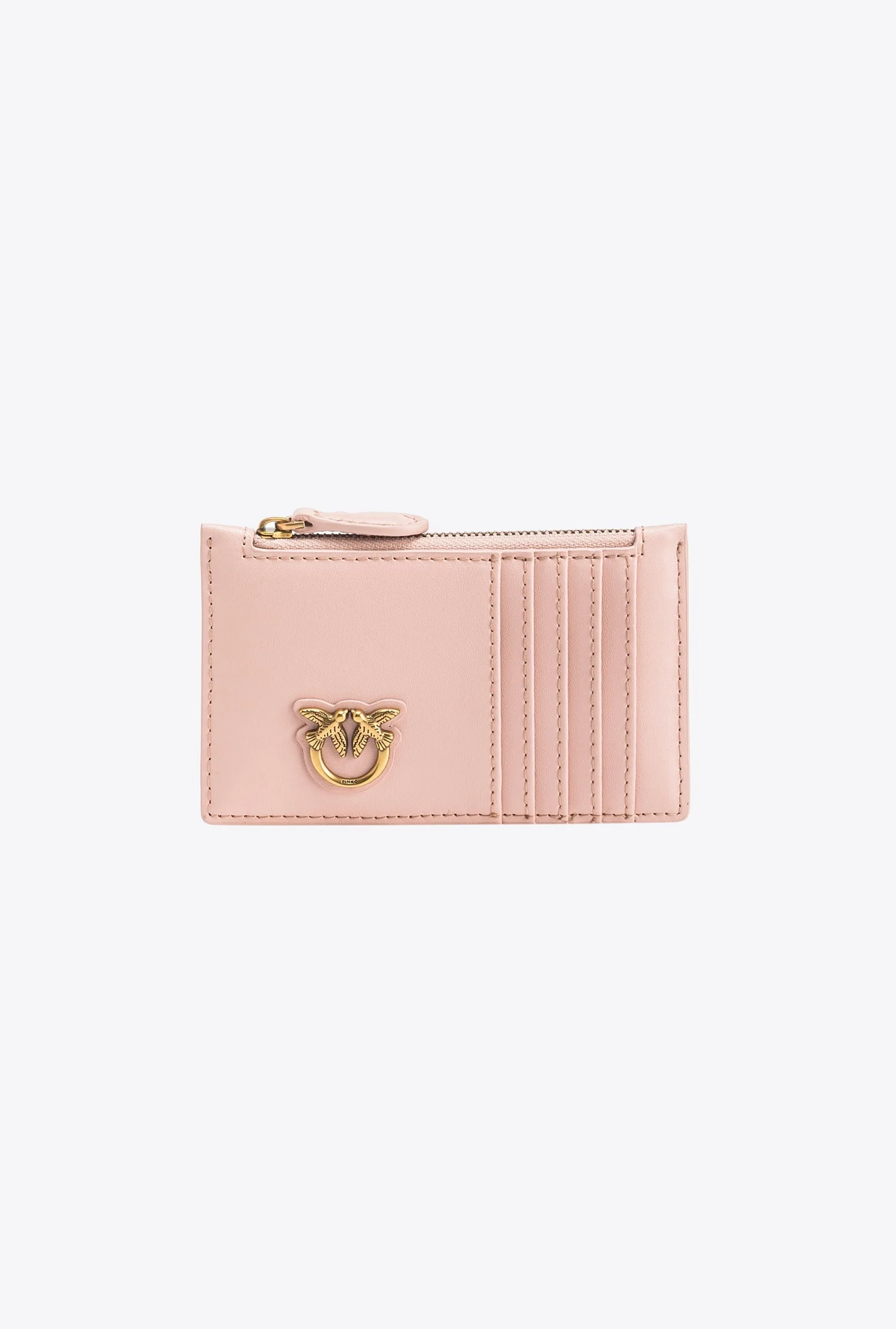 AIRONE CARD HOLDER − 100251A0F1O81Q00001 Soft, silky leather card holder. Metal Love Birds Diamond Cut logo plaque embellishment. Polycotton-lined interior. Zip fastening. COMPOSITION Leather: COWHIDE 100% BOVINE SKIN 100% - Accessory: Zinc 100% - Lining: COTTON 100% MEASUREMENTS - Height: 8 cm - Width: 1 cm - Length: 14 cm