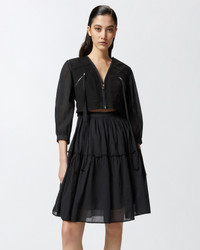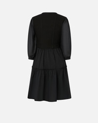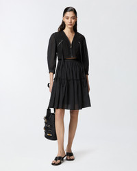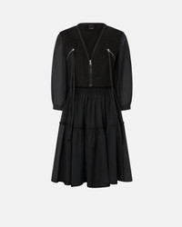FRANK DRESS − 105251A2MIZ99 Women's short dress made of a skilful combination of very light cotton voile and cotton canvas, for a contrast of textures, weights and volume. The upper part is characterized by a jacket silhouette, with three-quarter sleeves, a deep V-neck and slanted pockets closed with zip, with a long zip puller as a hallmark of the garment. Between the top and the soft skirt there is a front opening, which creates a two-piece effect, almost as if it were a jacket worn with a matching skirt and not a dress. This cotton dress gives you, in a single gesture, a feminine and versatile outfit, which adapts to multiple occasions. COMPOSITION 1° Outside Fabric: COTTON 100% - 2° Outside Fabric: COTTON 100% - Lining: COTTON 100% - : POLYESTER 70% RUBBER 30% ELASTODIENE 30%