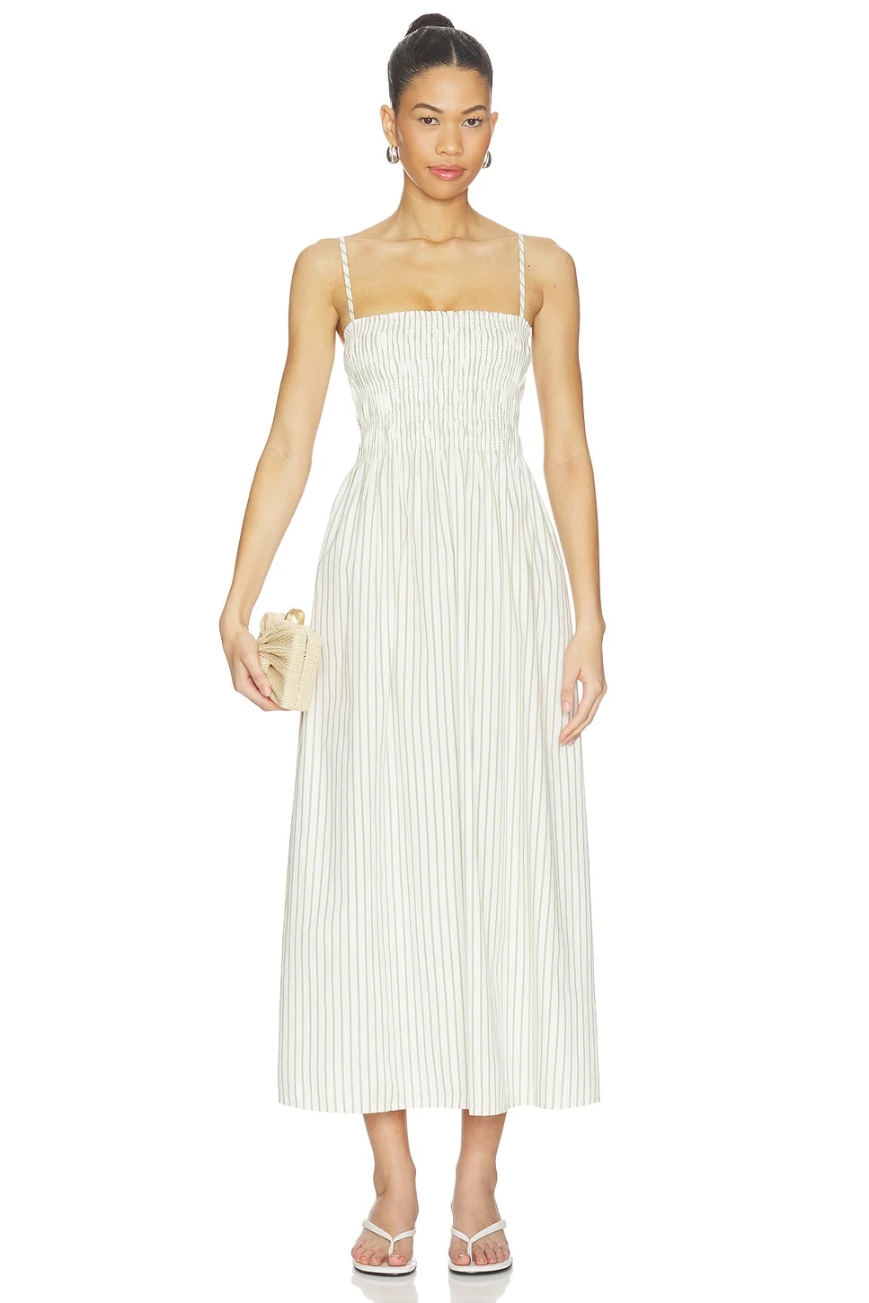 - 97% cotton 3% spandex - Made in Vietnam - Machine wash - Unlined - Pull-on styling - Lightweight poplin textile - Shirred bodice Hidden side seam pockets - Revolve Style No. PSTL-WD53 - Manufacturer Style No. P00071126CP