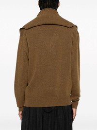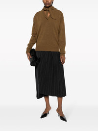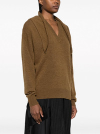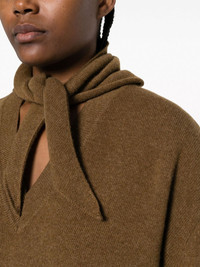 attached-scarf ribbed-knit jumper Highlights - Chestnut brown - Wool-cashmere blend - Ribbed knit - Attached scarf - Ribbed v-neck - Drop shoulder - Long sleeves - Ribbed cuffs and hem - Straight hem Made in Italy Composition Wool 70%, Cashmere 30% SIZE & FIT Model measurements Height 5 ft 11 in(1.8 m) Bust/Chest 31.49 in(80 cm) Hips 36.61 in(93 cm) Waist 24.4 in(62 cm) FittingInformation Designed for a relaxed fit, this piece allows for comfort and movement when worn Made with a midweight knit, this piece offers some stretch This piece fits true to size – take your usual size Washing instructions Hand Wash