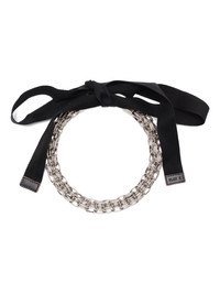 chain-link ribbon necklace Highlights - Black - Silver-tone chain - Ribbon tie fastening - Logo patch Made in Italy SIZE & FIT Model measurements Height 5 ft 9 in(1.75 m) Bust/Chest 32.67 in(83 cm) Hips 36.22 in(92 cm) Waist 24.8 in(63 cm) Measurement Length when open 61.02 in(155 cm) PENDANT LENGTH 15.74 in(40 cm) PENDANT WIDTH 0.59 in(1.5 cm) TOTAL LENGTH 0.78 in(2 cm)