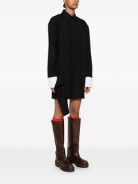 shirt mini dress Highlights - Black - Wool-cotton blend - Canvas - Concealed front button fastening - Classic collar - Drop shoulder - Long sleeves - Detachable cuffs - Buttoned cuffs - Draped panel detail - Full lining - Straight hem - Above-knee length Made in Italy Composition Outer: Wool 87%, Cotton 13% Lining: Cupro 100% SIZE & FIT Model measurements Height 5 ft 10 in(1.77 m) Bust/Chest 33.07 in(84 cm) Hips 37 in(94 cm) Waist 24.8 in(63 cm) FittingInformation Designed to be unstructured, offering a loose fit throughout Made from a midweight non-stretch fabric