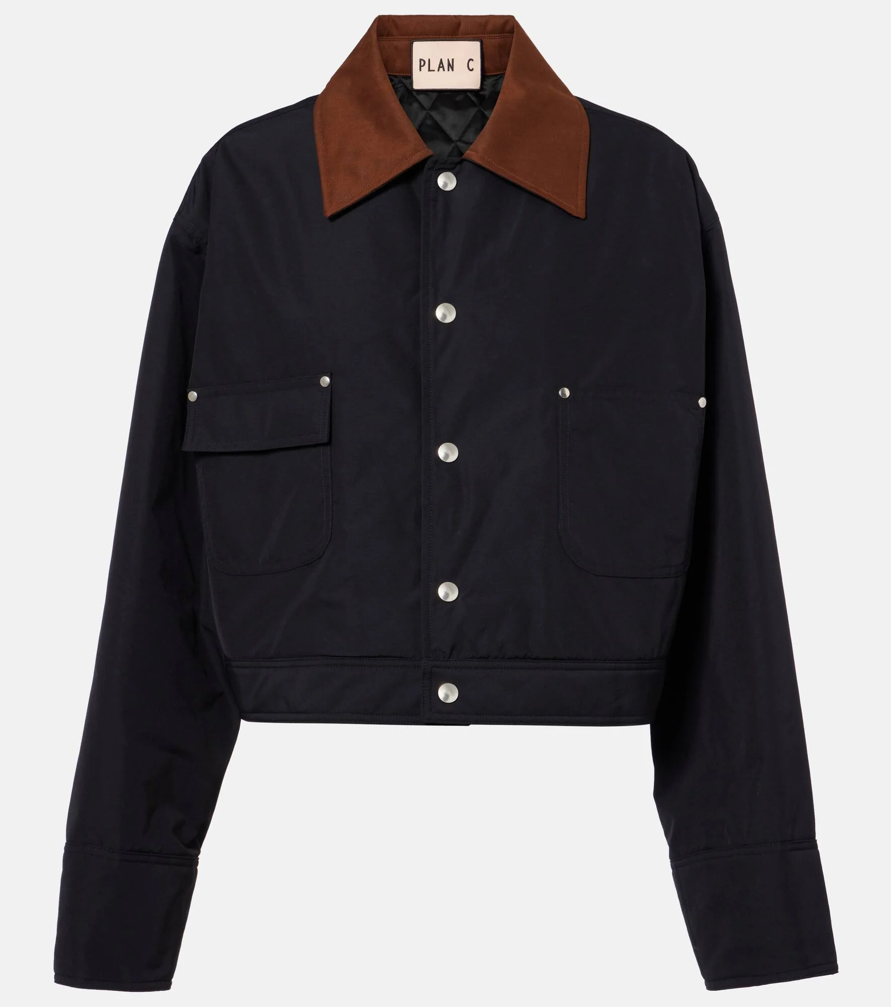 Streamlined yet sophisticated, this jacket from Plan C is cut from twill to a cropped silhouette. The design is fitted with a contrast collar and patch pockets on the front, and finished with snap button closure. Product Details - Material: 65% polyamide, 35% cotton - Care instructions: machine wash at 30 degrees - Made in Italy - Designer color name: Black - Item color: black - Lining: 66% cupro, 34% polyester - Filling: 100% polyester - Closure: snap-buttoned front - Pockets: patch pockets - Item number: P01088247 Size & Fit - True to size - For a closer fit, we recommend taking one size down - Dropped shoulders - Designed for a loose fit - Non-stretchy fabric - Cropped - The model seen in the picture is 178cm-5'10" and wearing a size IT 40