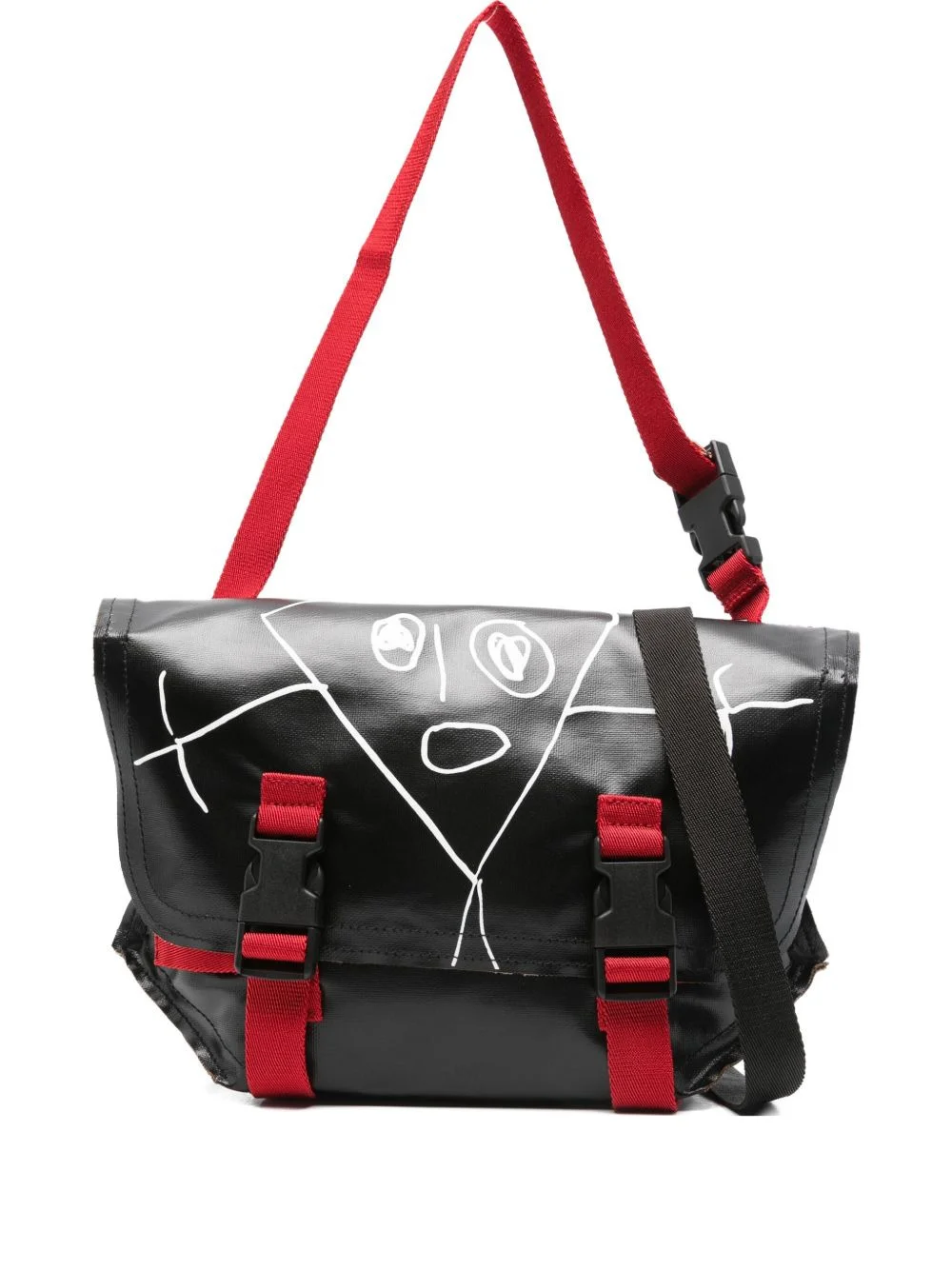 doodle print buckle bag Highlights Made in Italy Composition Outer: Polyurethane 100% SIZE & FIT Model measurements Height 5 ft 10 in(1.77 m) Bust/Chest 33.07 in(84 cm) Hips 37 in(94 cm) Waist 24.8 in(63 cm) Measurement DEPTH 3.93 in(10 cm) HEIGHT 7.87 in(20 cm) WIDTH 13.38 in(34 cm)